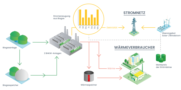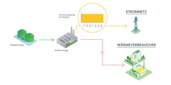 Dann braucht es andere Energielieferanten, die rasch einspringen können, um die fehlenden Strommengen zu erzeugen. Blockheizkraftwerke bieten die notwendige Flexibilität, die volatilen Energiequellen auszugleichen, wenn diese gerade nicht zur Verfügung stehen. So arbeiten z. B. in Europa zahlreiche biogasbetriebene KWK-Anlagen im Regelbetrieb. Sie decken die Residuallast ab, statt ständig zu produzieren und Grundlaststrom in das öffentliche Netz einzuspeisen. Auch bestehende Biogasanlagen können für eine flexible Produktion umgerüstet werden und damit einen Beitrag zur zukünftigen Energieversorgung leisten.