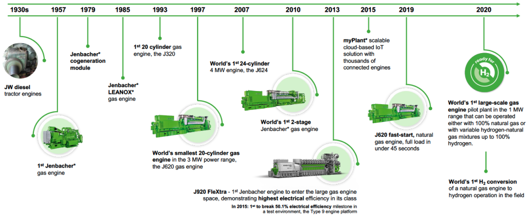 As a leading provider of renewable gas, natural gas, and hydrogen-rich solutions, Jenbacher helps to provide communities, industry and the public access to sustainable, reliable and economical power. Jenbacher engines are packaged generator sets and cogeneration and trigeneration units for power generation. Ranging in power from 250 kW to 10.6 MW per unit, our engines run on a broad range of energy sources, from pipeline gas to hydrogen, enabling efficient onsite power, heating, and cooling. With primary operations in Jenbach (Austria) and worldwide services, we have delivered more than 27,500 Jenbacher engines to about 100 countries. Jenbacher is a brand of the INNIO Group.