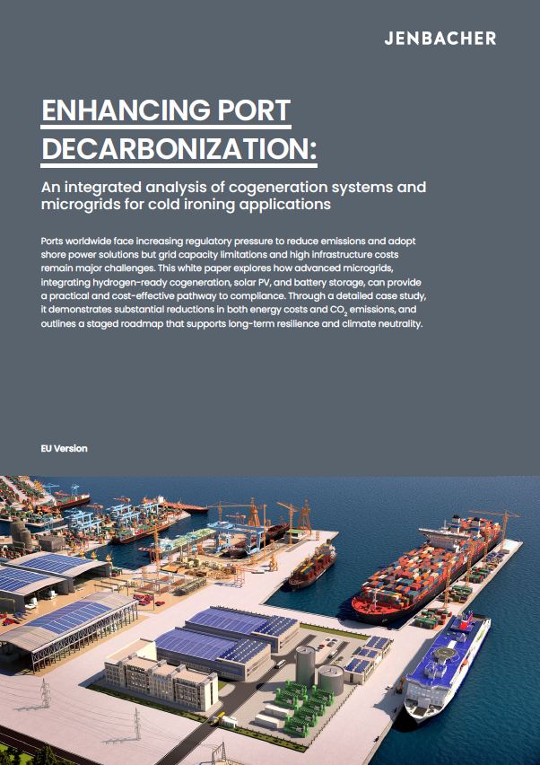 Ports across Europe can pursue decarbonization by implementing advanced shore power microgrids with combined heat and power systems, featuring “Ready for H2” engines that operate on low-carbon fuels, renewable energy sources and battery storage. These solutions help deliver a dependable energy supply and enhance operational efficiency, even under grid constraints.
