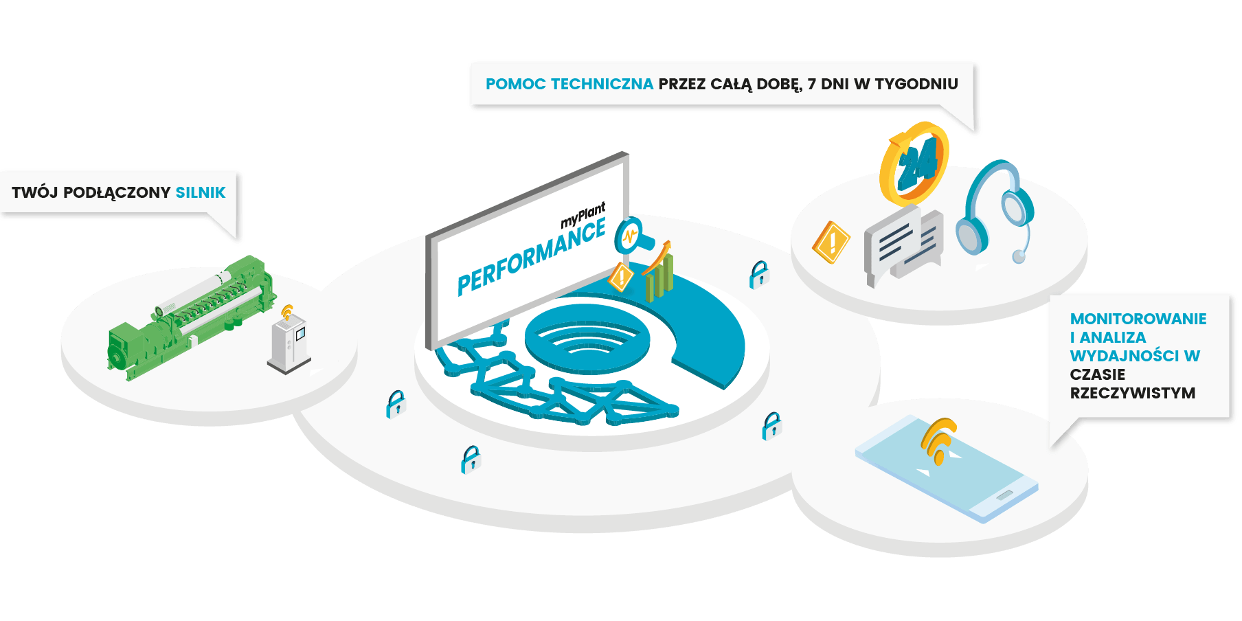 - Algorytmy myplant Performance nieustannie analizują dane przesyłane z silników w celu wykrycia wszelkich odchyleń, które mogłyby spowodować nieplanowane zdarzenia.